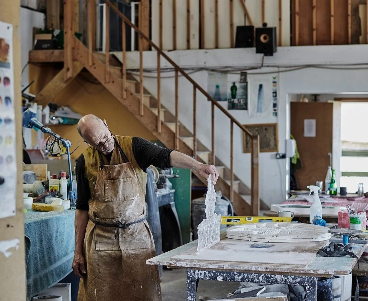 Max works from his spacious converted barn studio in Maidstone, Kent where he takes on a range of challenging sculptural and architectural projects and exhibits regularly. He is continually involved in education, regularly leading short courses across the UK and Europe including The Glass Hub, Frome, Somerset and Bildwerk, Fraunau, Germany.